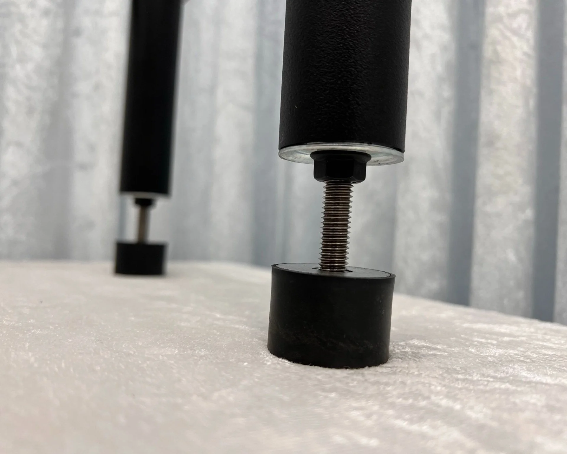 HEIGHT ADJUSTMENT - precise 3.5” of travel per leg with jam nut